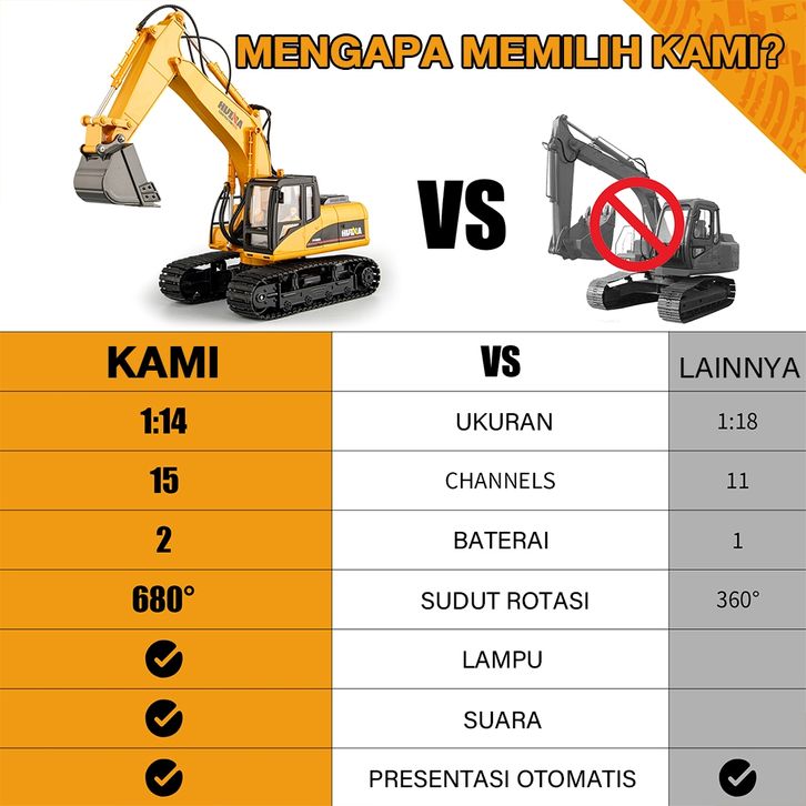 15 Saluran Besar Excavator Remote Control 1:14 2.4GHz RC Beko Bahan Paduan Truk Penggali Setir Mobil