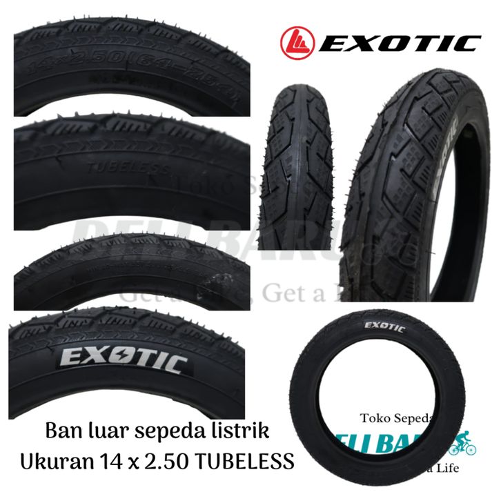 Exotic Ban luar 14 x 2.5 tubeless sepeda listrik tanpa ban dalam tube less