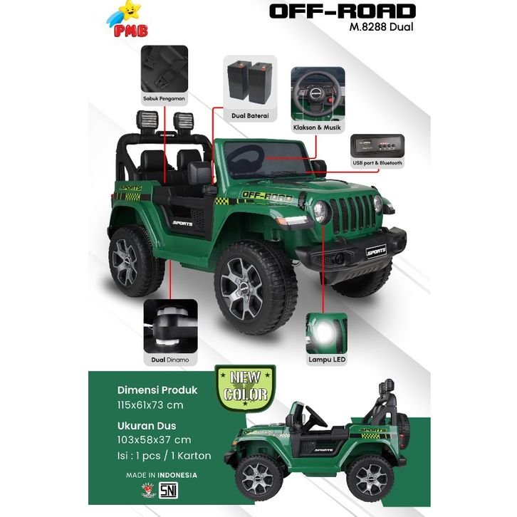 Mobil Mainan Aki Jeep Rubicon Ban Karet Murah PMB EVA