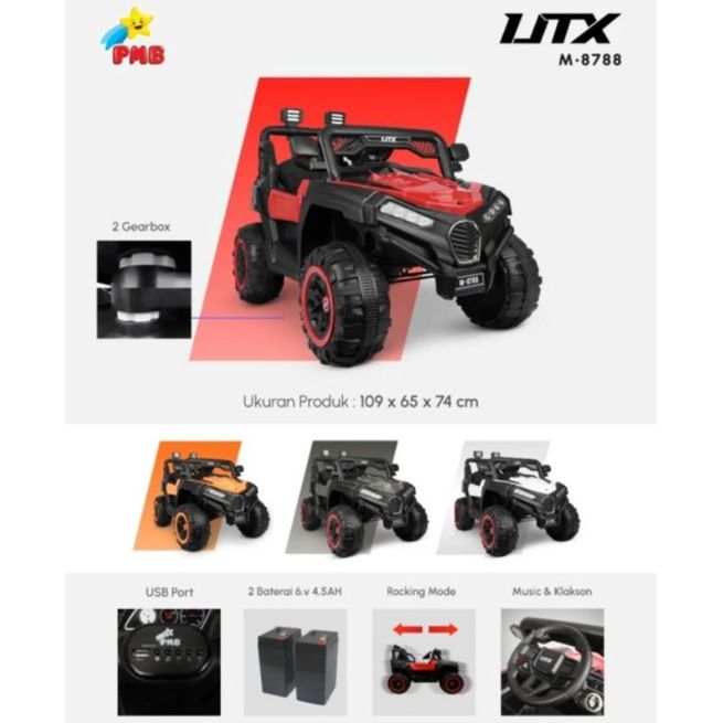 Mainan Anak Mobil Aki PMB M- Jeep Monster UTX M M