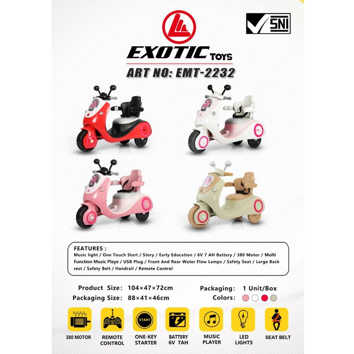 Mainan Motoran Aki Anak Exotic EMT2242 EMT 2232Ada Remote EMT 2237