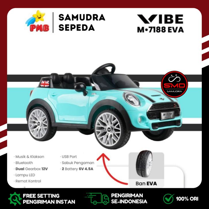 Mobil Aki Mainan Anak Remote PMB 71 Eva Mini Cooper Mortein Dual Dinamo 12V Murah BDG