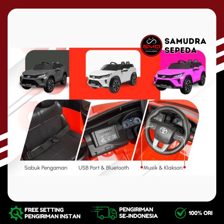Mobil Aki Mainan Anak Cas Remot PMB 75 Fortuner 12V Murah BDG