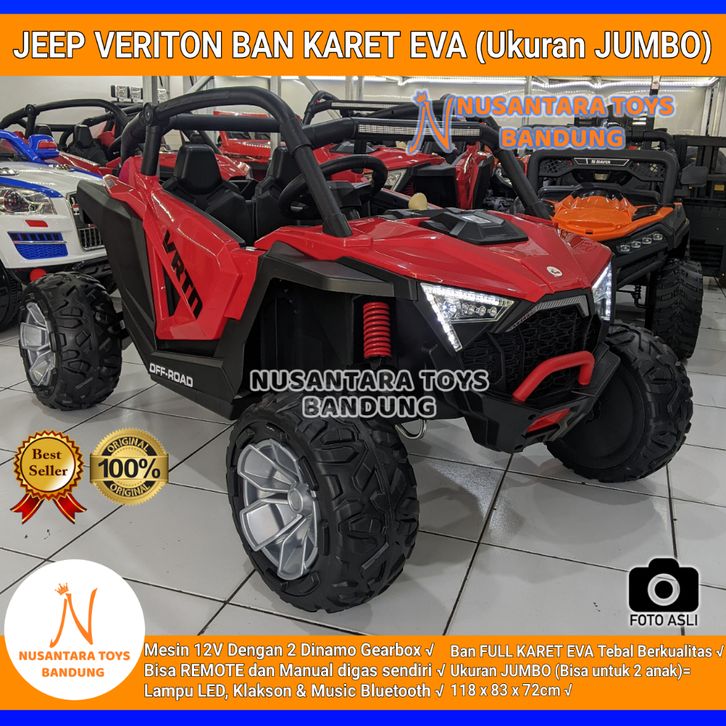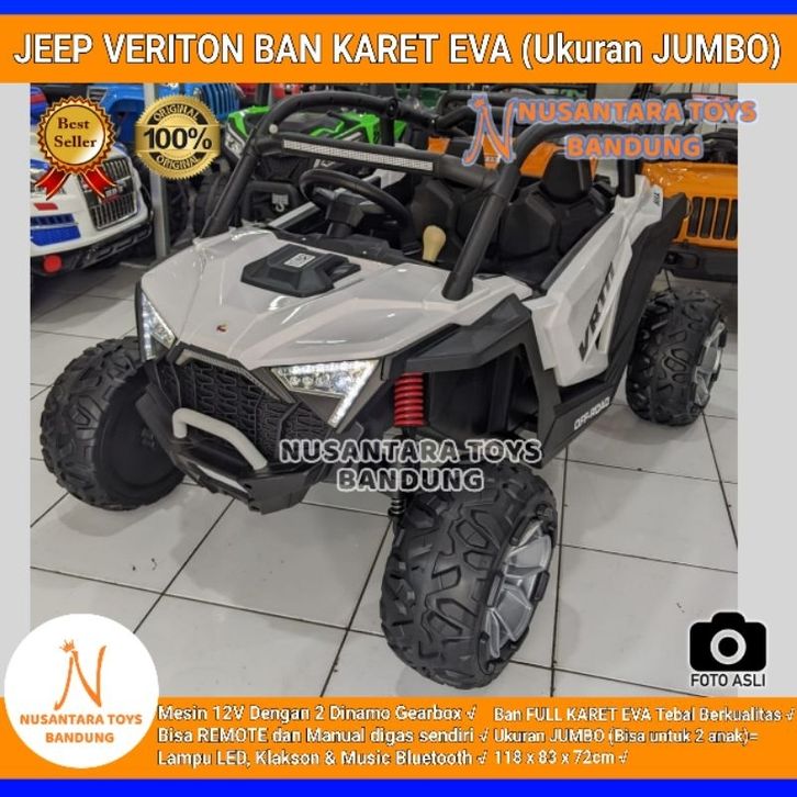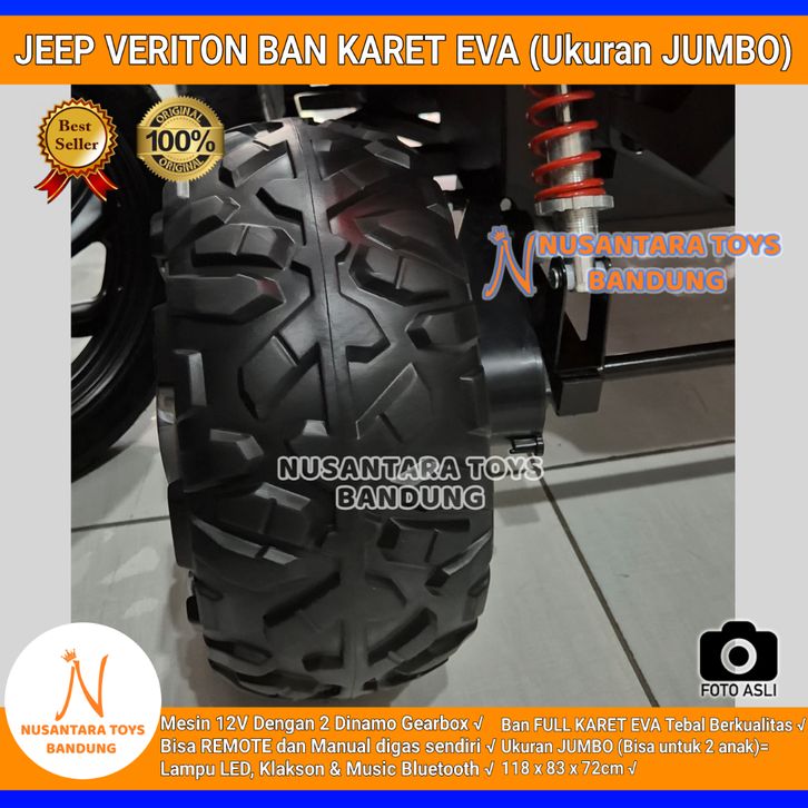 Mobil Aki Jeep Veriton Ban Karet Eva Ukuran Jumbo ORINAL PMB M92C Bisa 2 Anak Remote SNI M 92