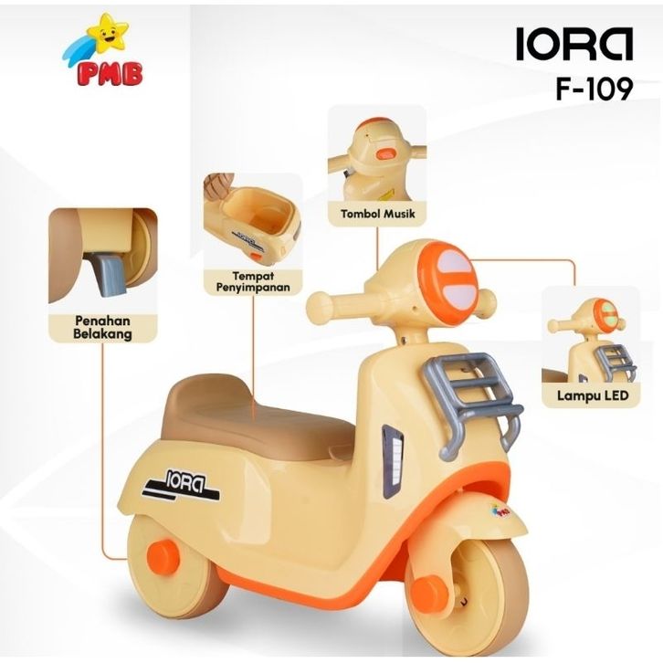 Mainan Anak Ride On PMB Iora F19 Vespa Dorong Manual F 19