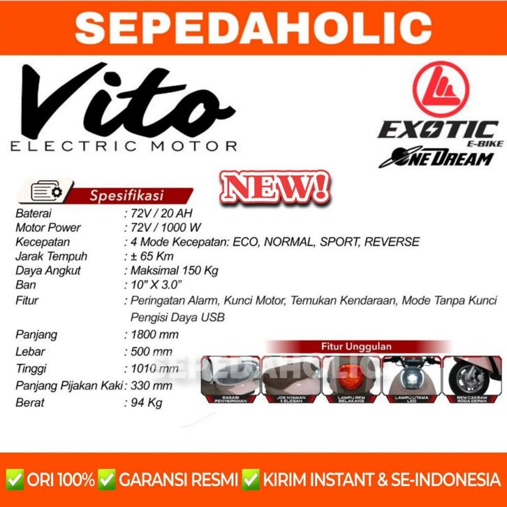 Sepeda Motor Listrik EXOTIC VITO BY PACIFIC 1000 Watt Electric E Bike