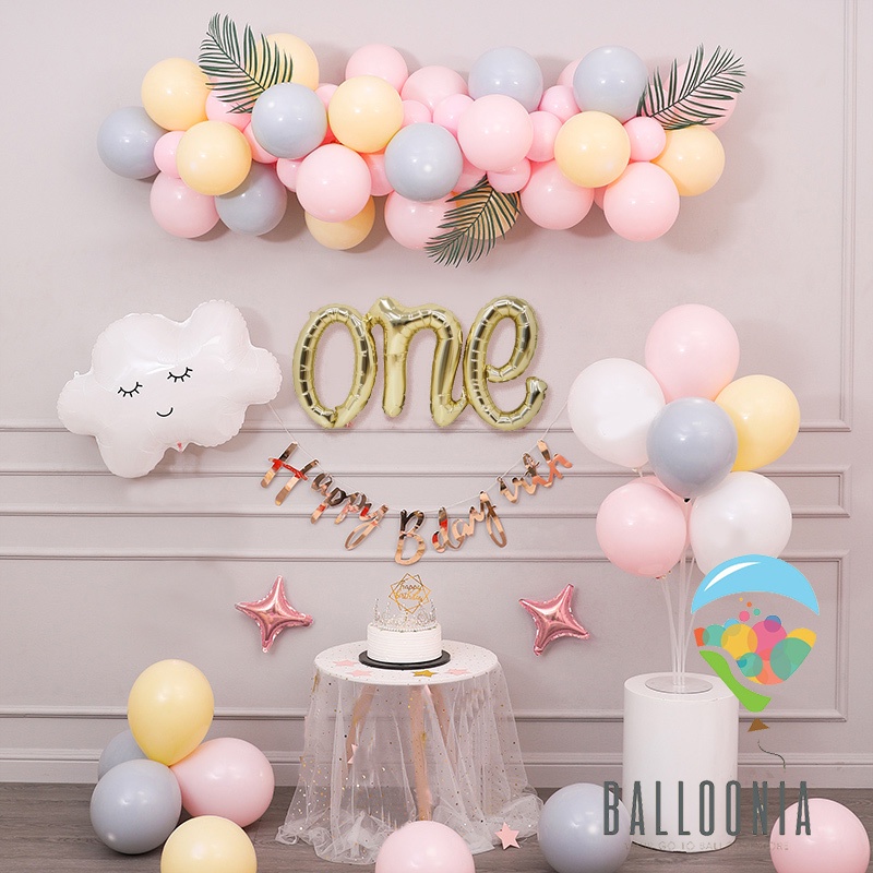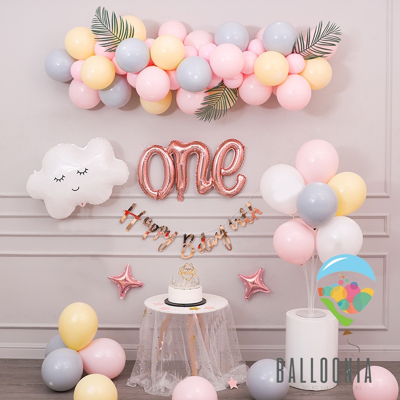 Set Balloon Happy Birthday One Link Rose Gold Chain / Balon Dekorasi Ulang Tahun Ultah