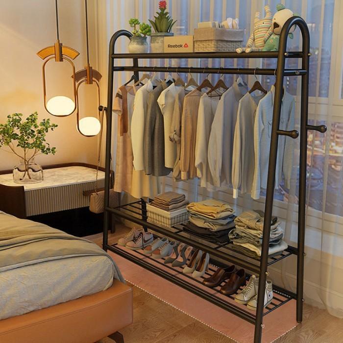 KABINET PAKAIAN CABINET BAJU IRON WARDROBE CLOTHES BIG RAK LEMARI GANTUNGAN BAJU JEMURAN STAND HANGER SERBAGUNA TAS SEPATU GAMIS - HITAM