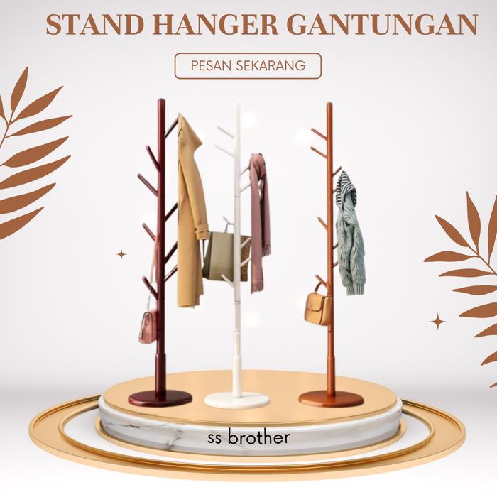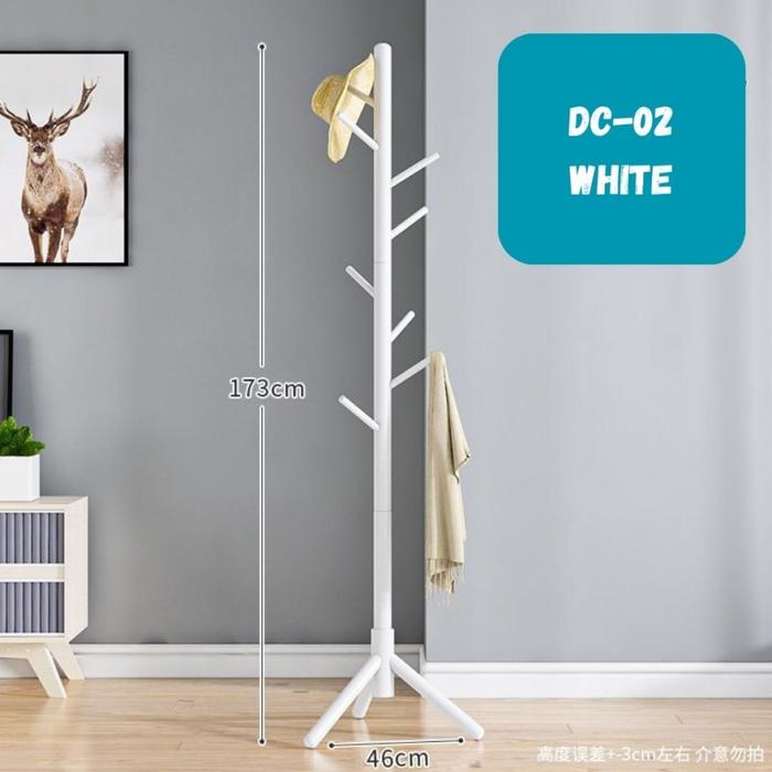 STAND HANGER KAYU RAK GANTUNG BAJU HANGER KAYU GANTUNGAN TOPI TAS - DC-03 WHITE