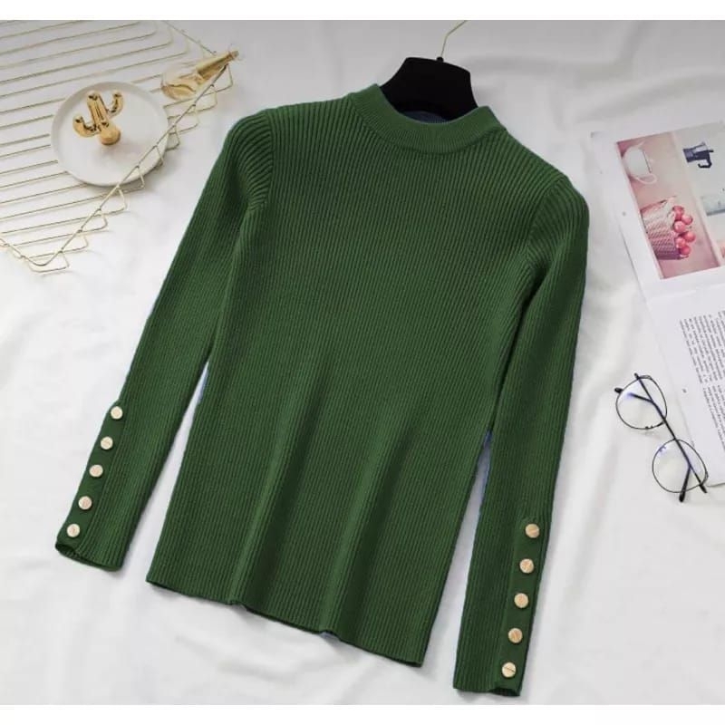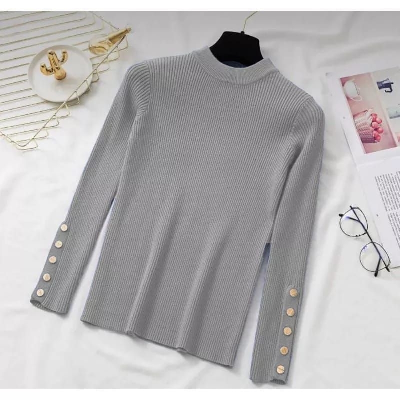 INNARA Turtleneck Rajut Wanita Button Kancing Kekinian Blouse Bahan Premium BEST SELLER