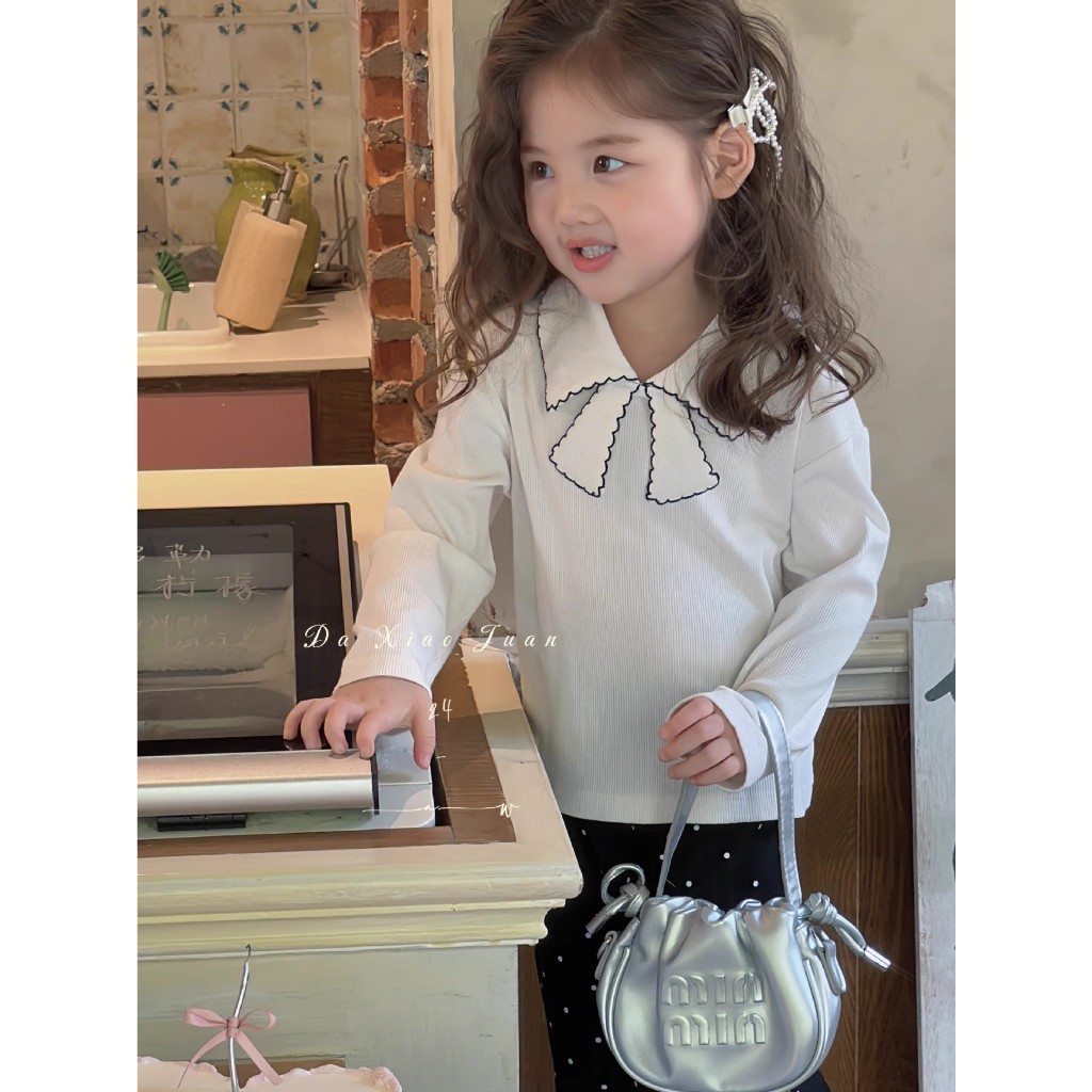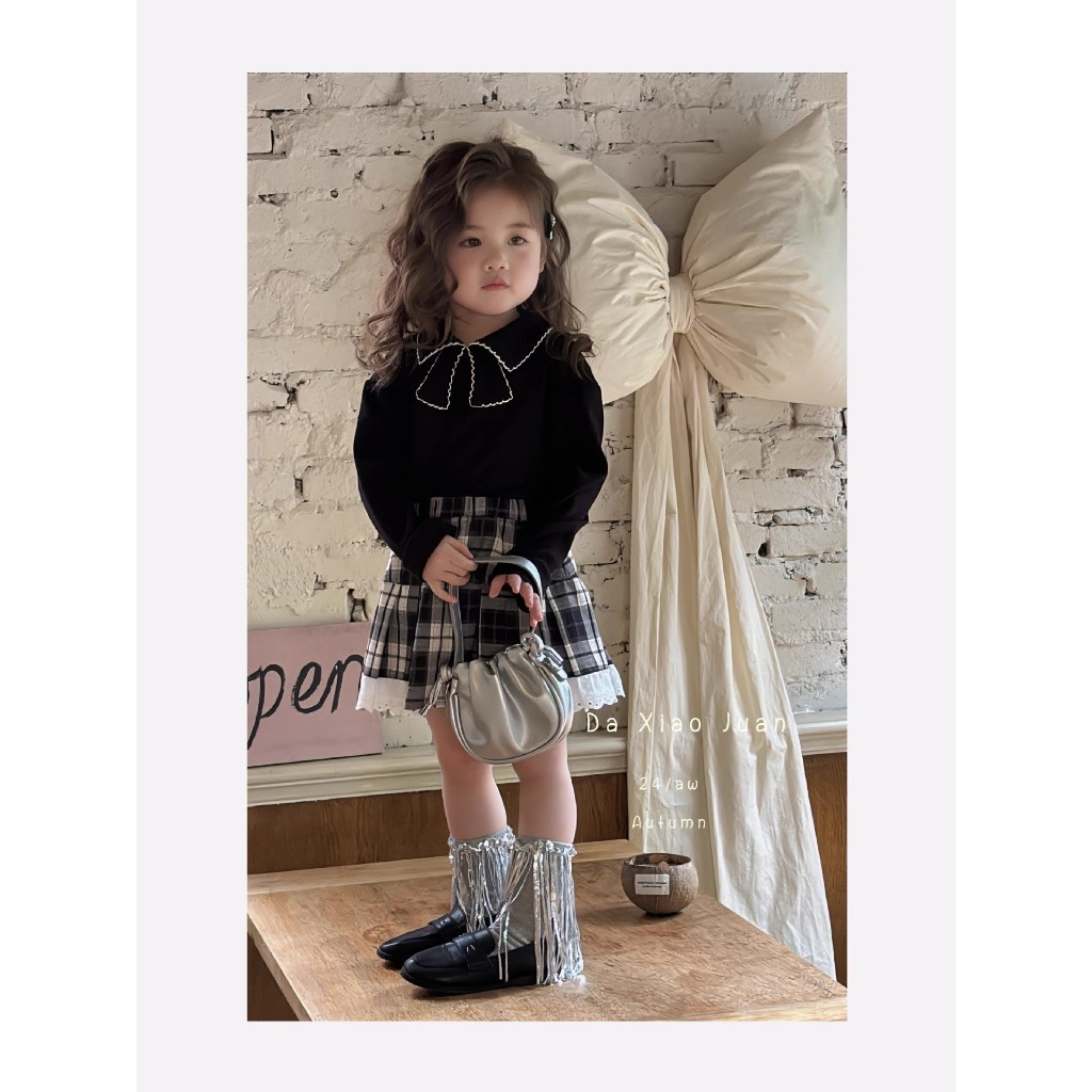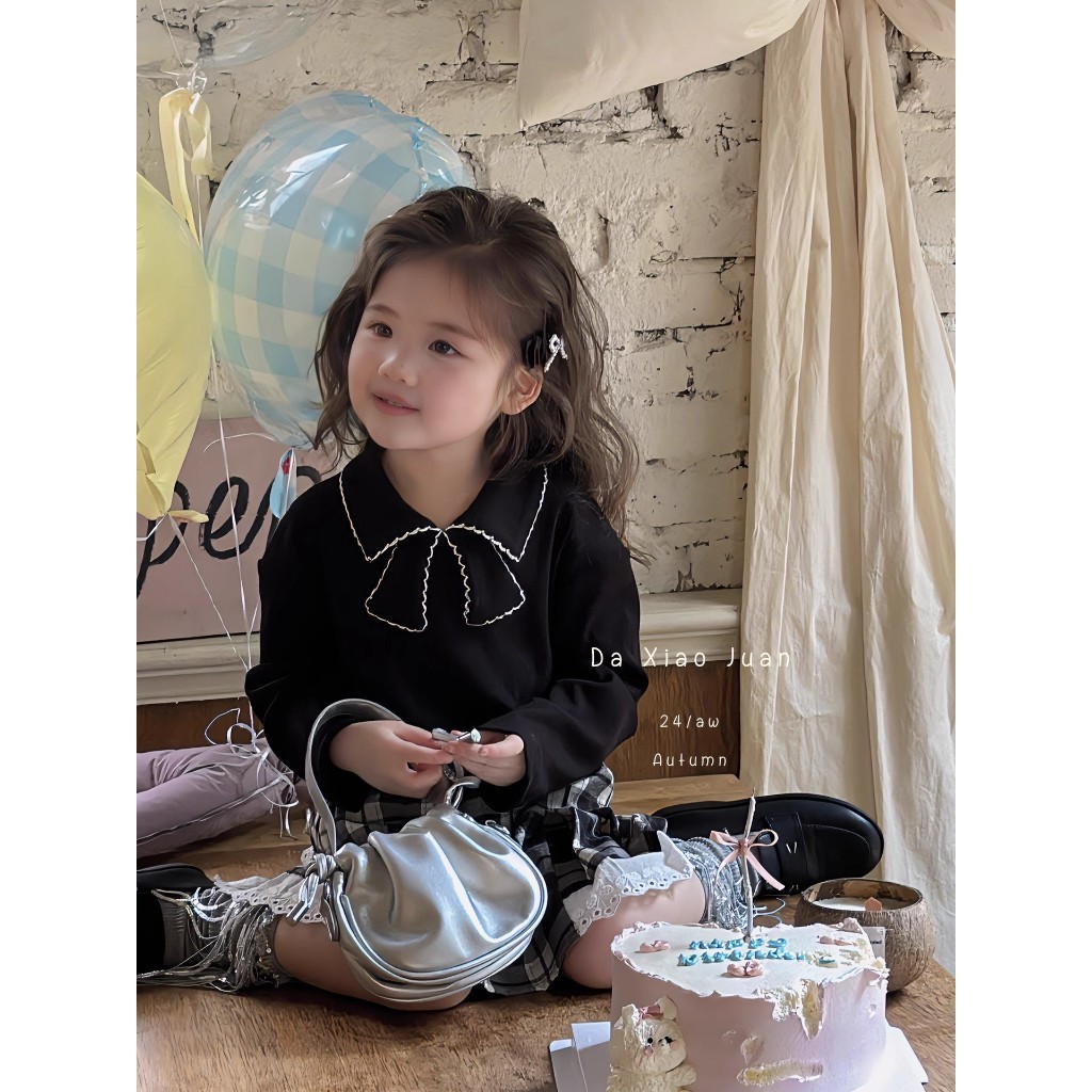 Lentera Anak Kemeja Bawahan Simpul Kupu-kupu Anak Perempuan Musim Semi dan Musim Gugur Atasan Kaos Lengan Panjang Dasi K