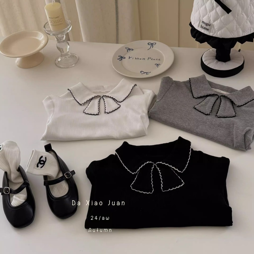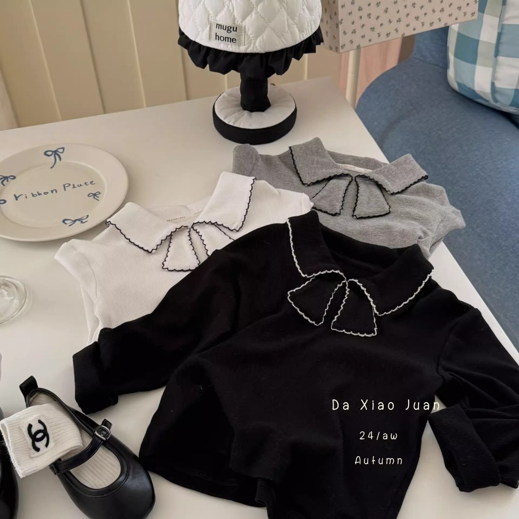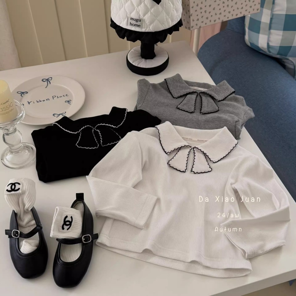 Lentera Anak Kemeja Bawahan Simpul Kupu-kupu Anak Perempuan Musim Semi dan Musim Gugur Atasan Kaos Lengan Panjang Dasi K