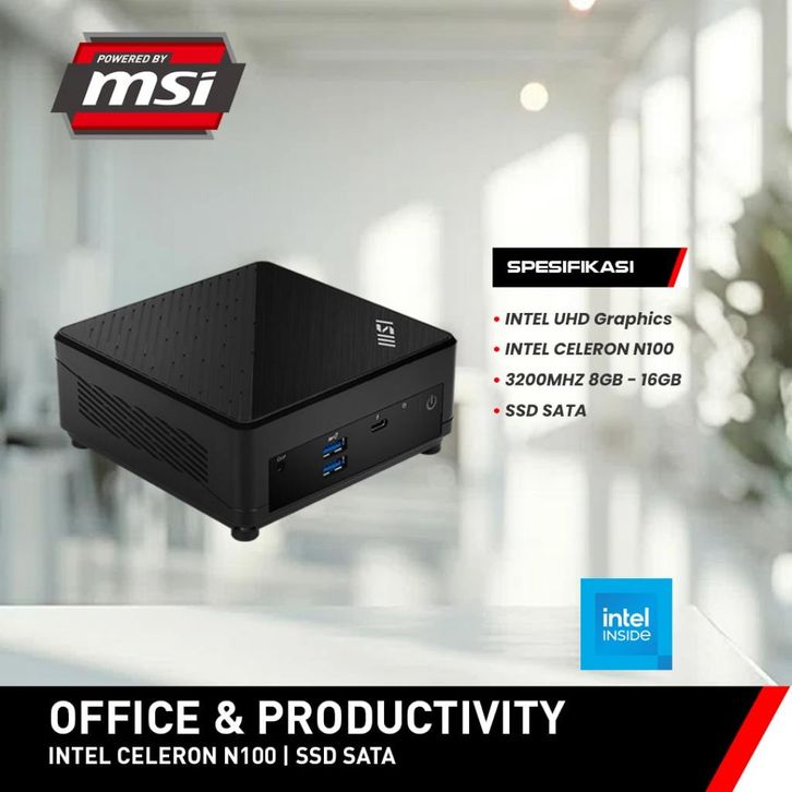 Mini PC MSI Cubi N ADL Intel Celeron N100 SSD SATA PC Kantor & Produktivitas Hemat Daya