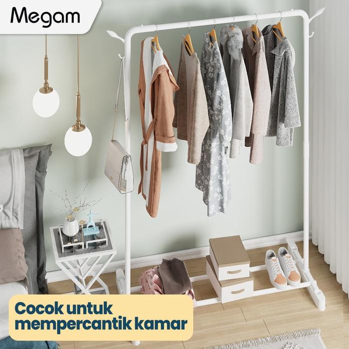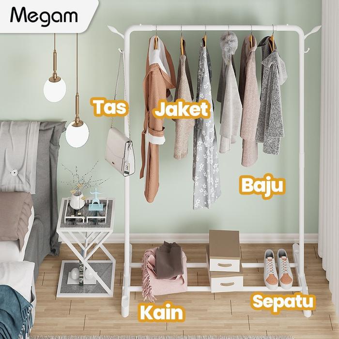 MEGAM STAND HANGER GANTUNGAN BAJU TEMPAT PENYIMPANAN PAKAIAN SEPATU HITS GAWANG TEMPAT GANTUNGAN BAJU STAND HANGER HSH103 - 103 110CM HITAM