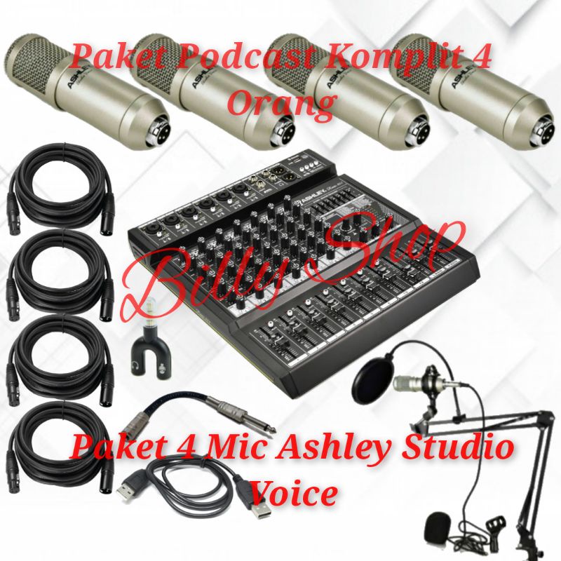 Paket Podcast 4 Orang Mixer Ashley / Paket 4 Mic Studio Voice