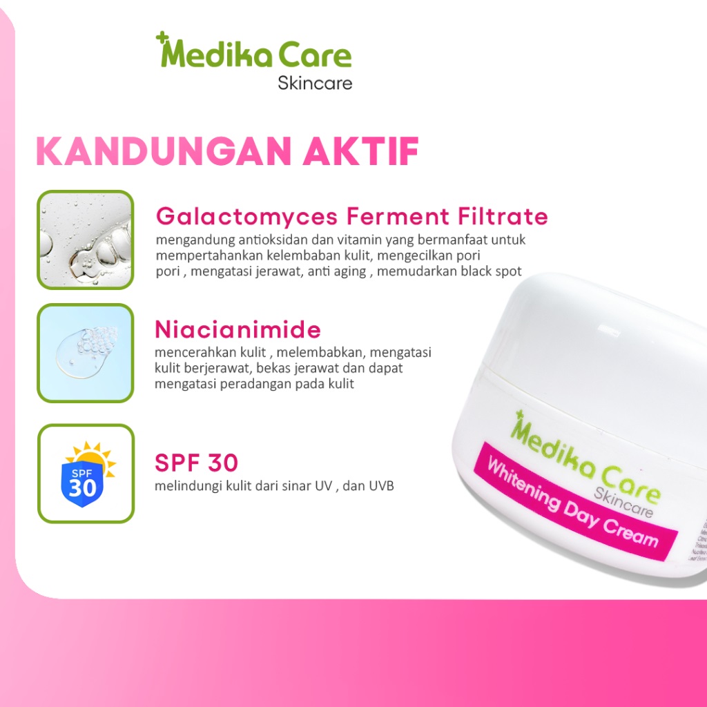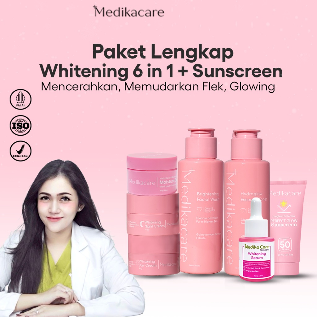SKINCARE MEDIKA CARE PREMIUM WHITENING SET 6 SET PERFECT GLOW MENCERAHKAN,MEMUDARKAN FLEK,MUDAH MERESAP,NON-COMEDOGENIC