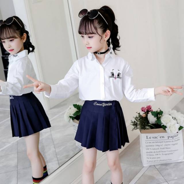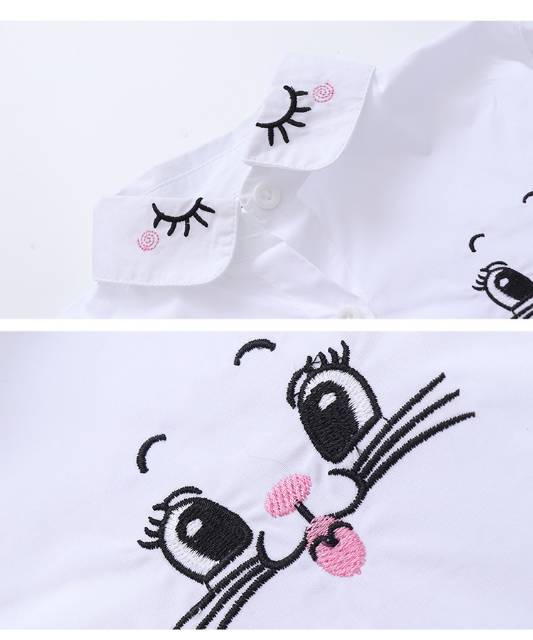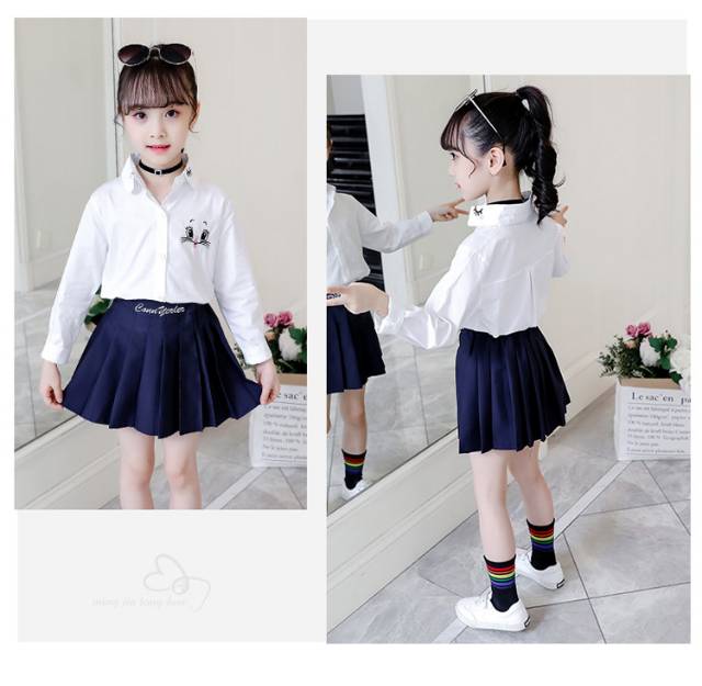 KEMEJA PUTIH LENGAN PANJANG ANAK PEREMPUAN LEBARAN LUCU MURAH IMPORT PINK PUTIH BIRU ANIMAL