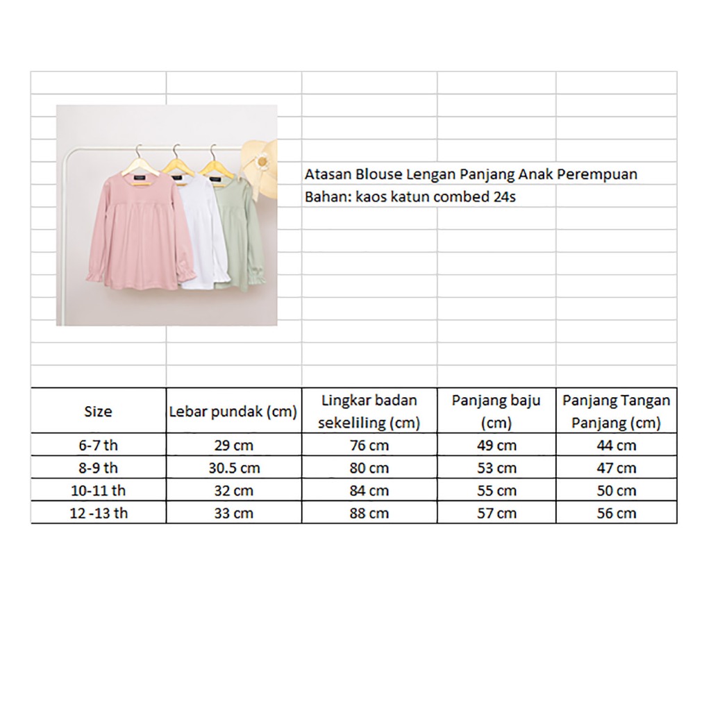 Atasan Blouse Putih Kaos Tshirt Lengan Panjang Anak Perempuan 6 8 10 12 Tahun
