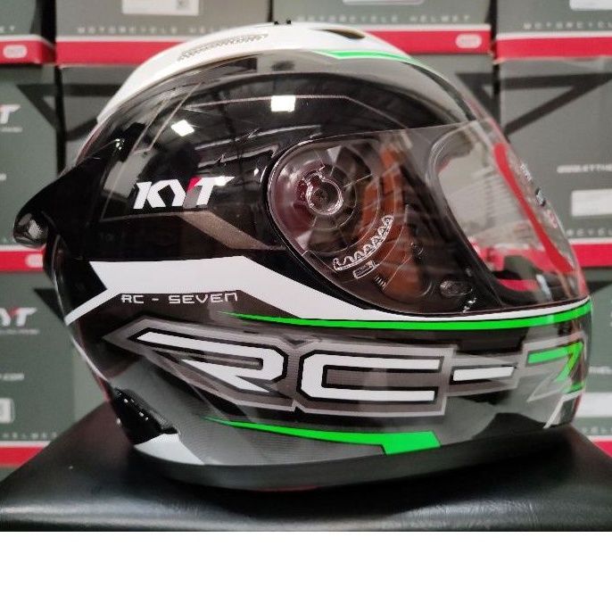 KYT RC SEVEN#14 BK/WH/GREEN FLUO