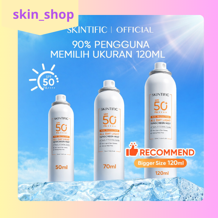 [Mall] Skintific - AllDayLight Sunscreen Mist Spf 50 Pa++++ 120ml | Sunscreen Spray Uv Mist Tone Up Sun Shield Sunscreen