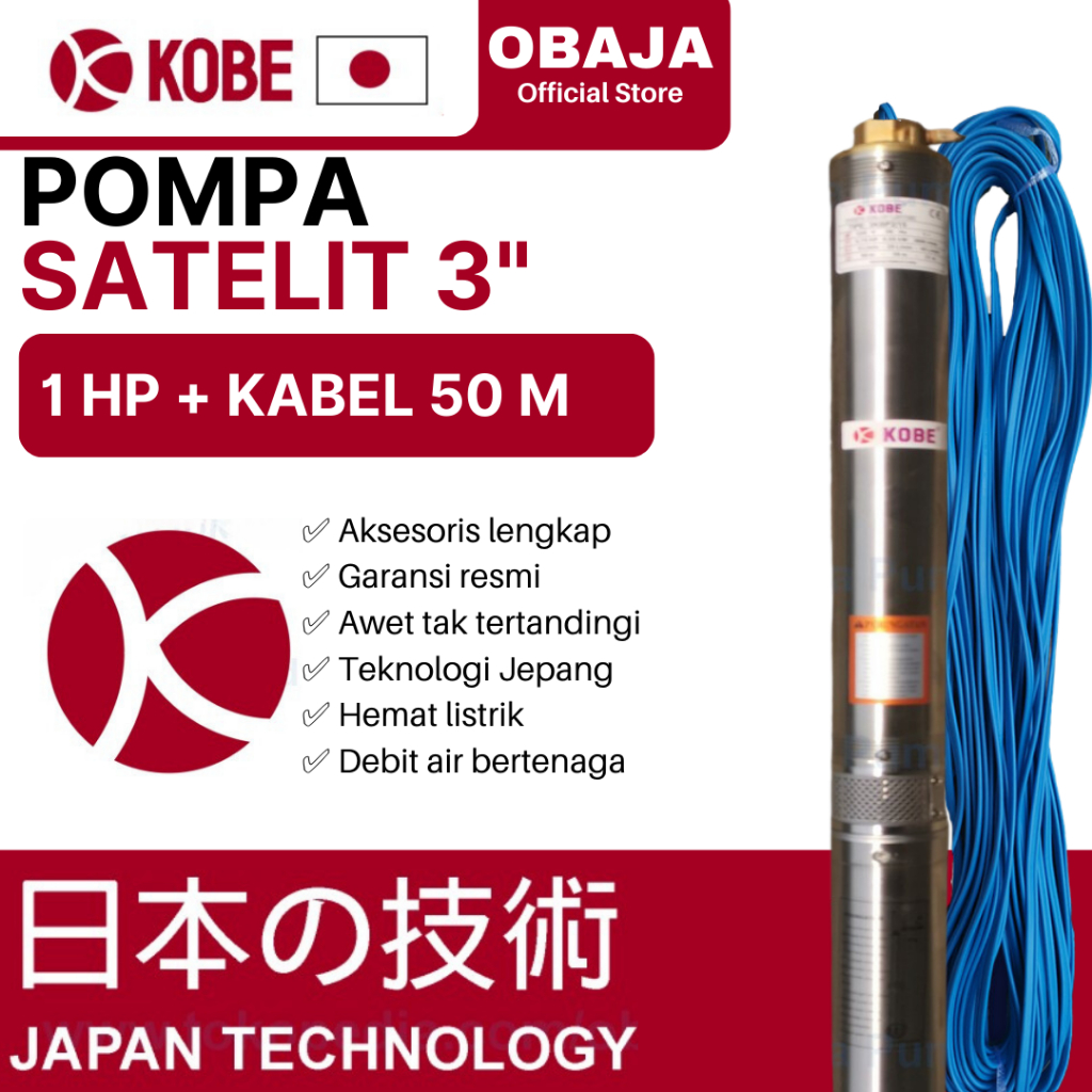 KOBE Pompa Satelit 3 inch 1 HP + Kabel 50 M/ Pompa Submersible Kobe 1 HP