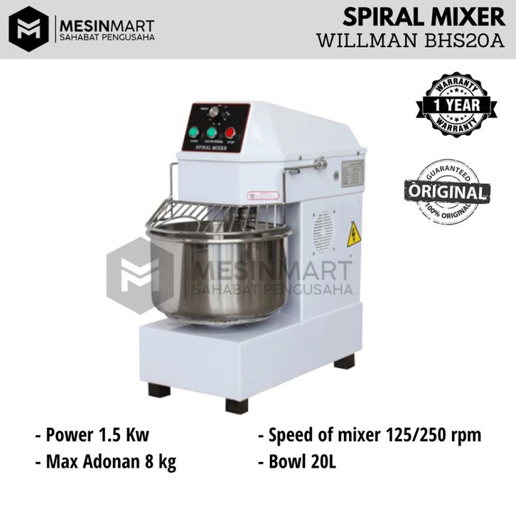 Spiral Dough Mixer Mesin Pengaduk Adonan Roti Pizza WILLMANBHS-20A 8KG