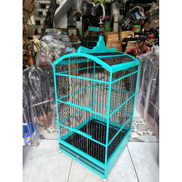 KANDANG SANGKAR KOTAK REPLIKA HIJAU TOSCA LIS KAKI KARET