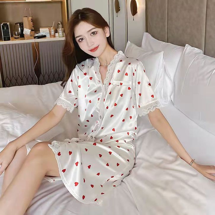 baru baju tidur sutra es seksi tipis lengan pendek setengah panjang piyama daster rayon/home dress rayon