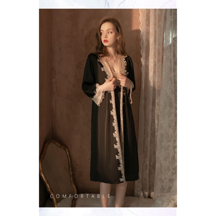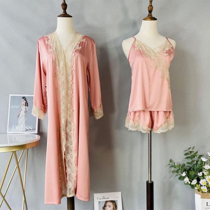 Vee-kimono silk set 3 gaun panjang 3654A/seserahan/baju tidur