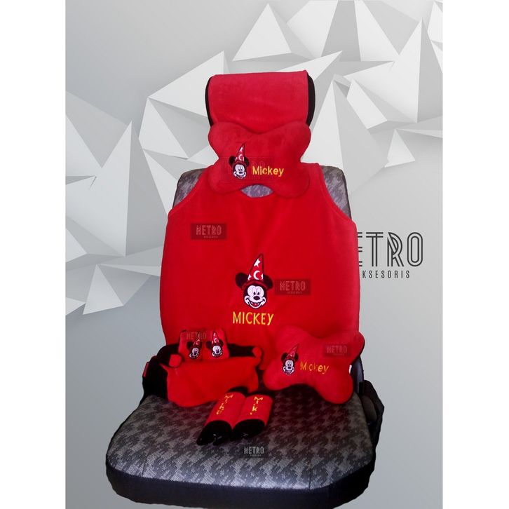 Bantal Mobil Mickey Mouse Bed 5 in 1 Bantal Set, Interior Aksesoris Mobil, Cover, Kursi, Setir, Belt, Tissue