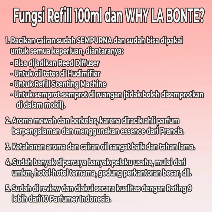 La Bonte Refill Diffuser Essential Fragrance Oil Aromatherapy 100ml - 11 Aroma Terapi Hotel Mewah - EO Journey 10ml