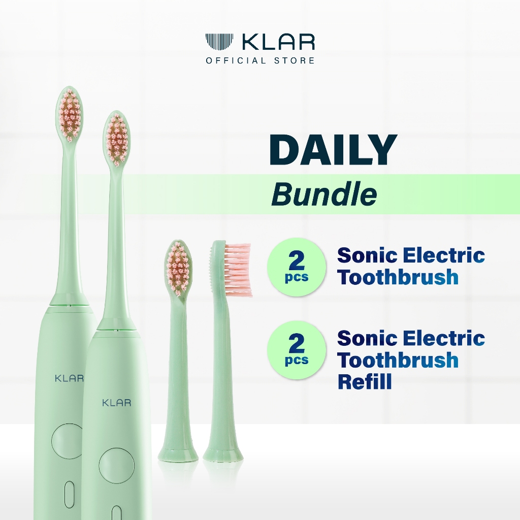 [Daily Bundle] 2Pcs Sonic Electric Toothbrush + 1Pc KLAR Head Brush Refill - Sikat Gigi Elektrik Dewasa dan Anak - Coco