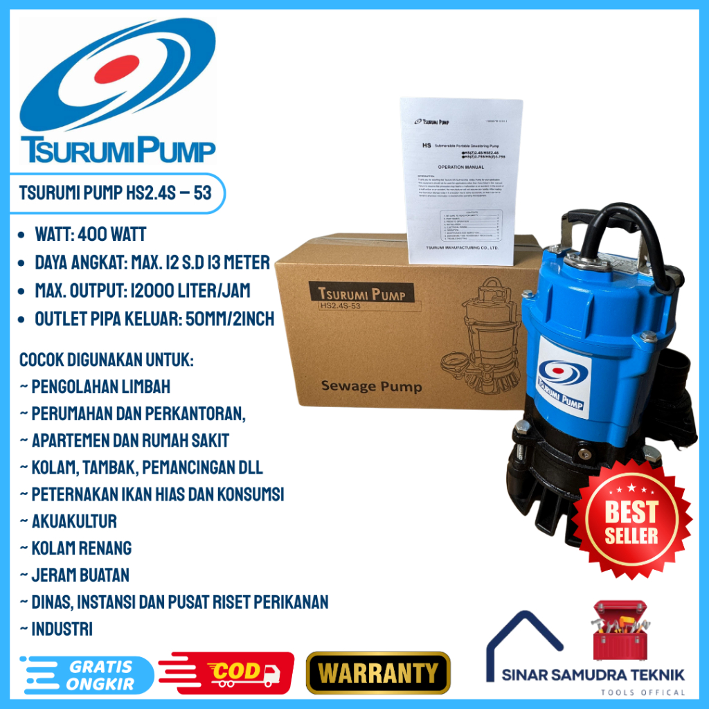 TERMURAH !!! Tsurumi PUMP HS 2.4 S - 53/ HS2.4S-53 Pompa Celup Air Kotor / Bersih Submersible