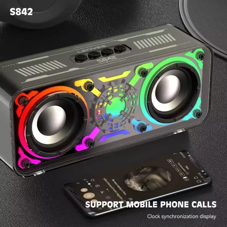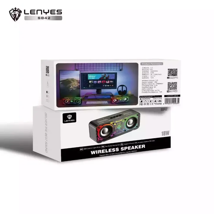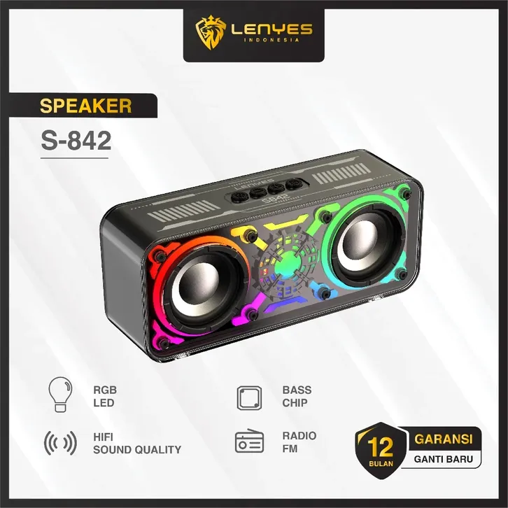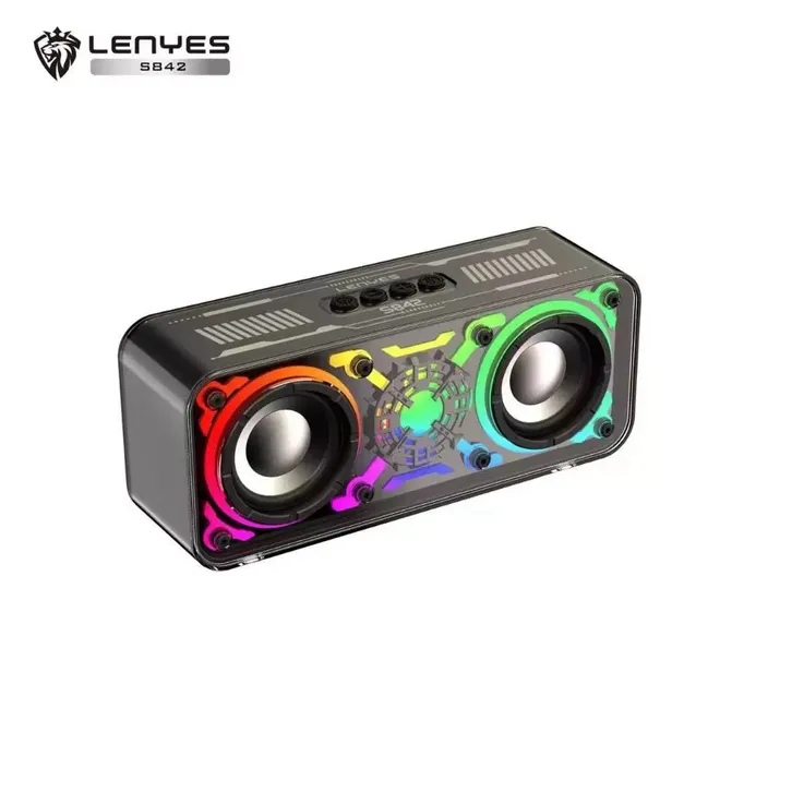 Speaker Wireless LENYES S842 18W Bluetooth 5.3 Transparan RGB LED Light TWS Portable FM Radio Original Official Store