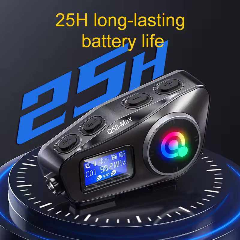Q58-MAX INTERCOM HEADSET HELM BLUETOOTH 5.3LAYAR LCD TAHAN AIR HUJAN RADIO MUSIC