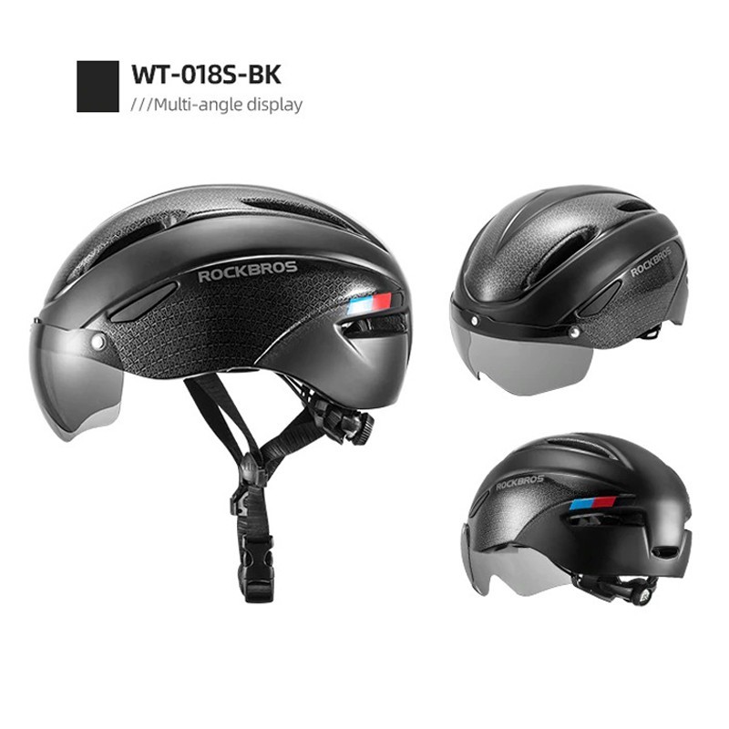 ROCKBROS WT-018S Bike EPS Helmet With Glasses - Helm Sepeda Black