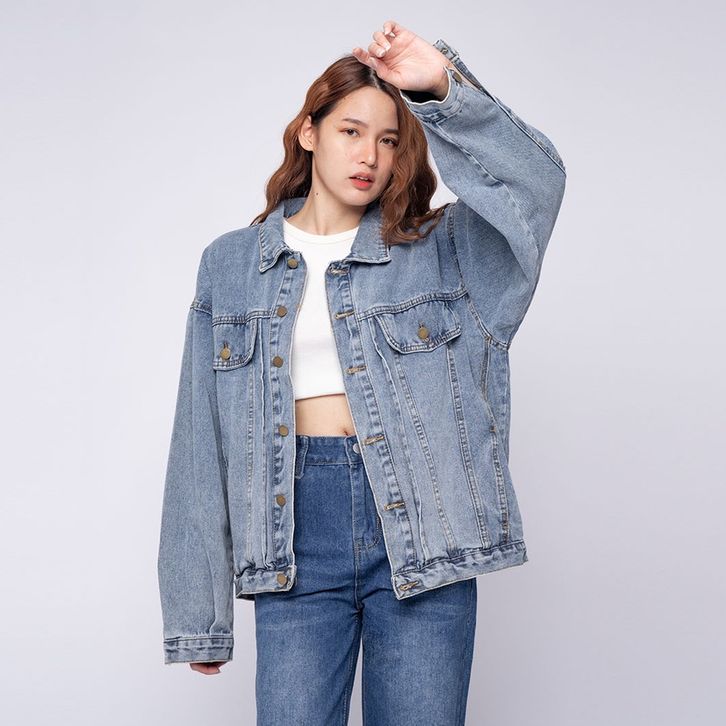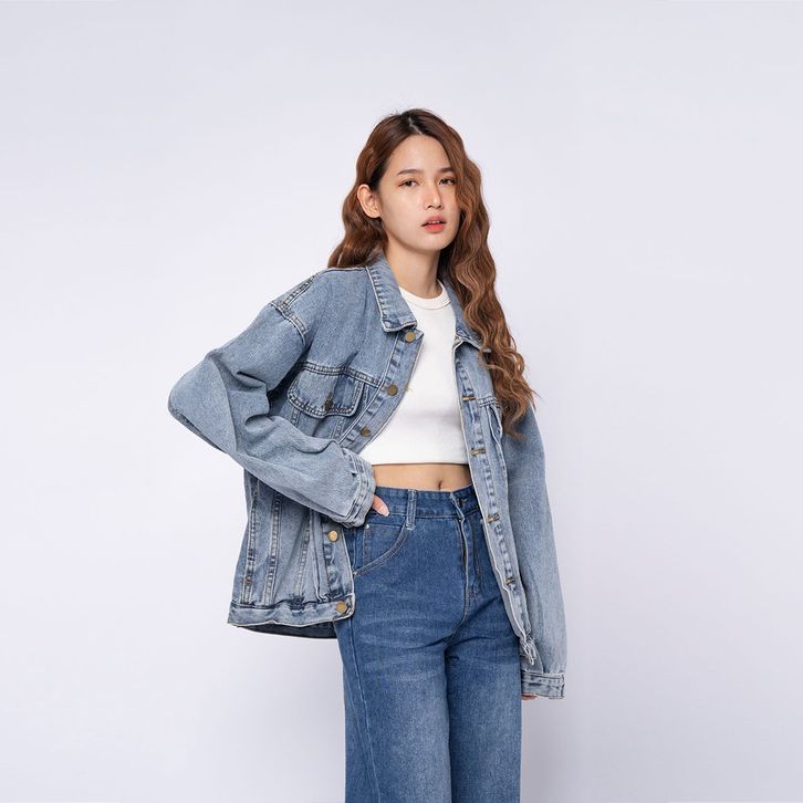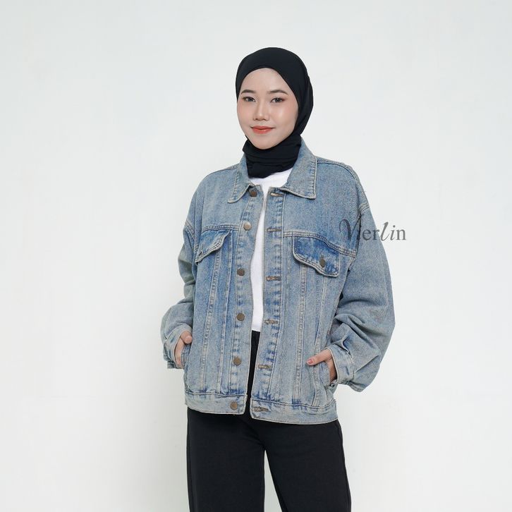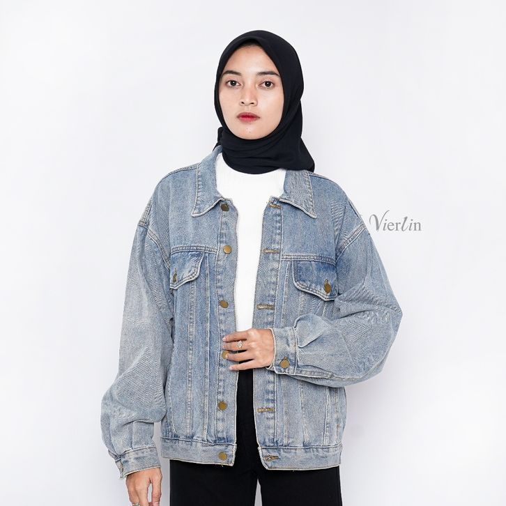 Jaket Jeans Wanita Allsize Oversize Denim Nyaman Vierlin