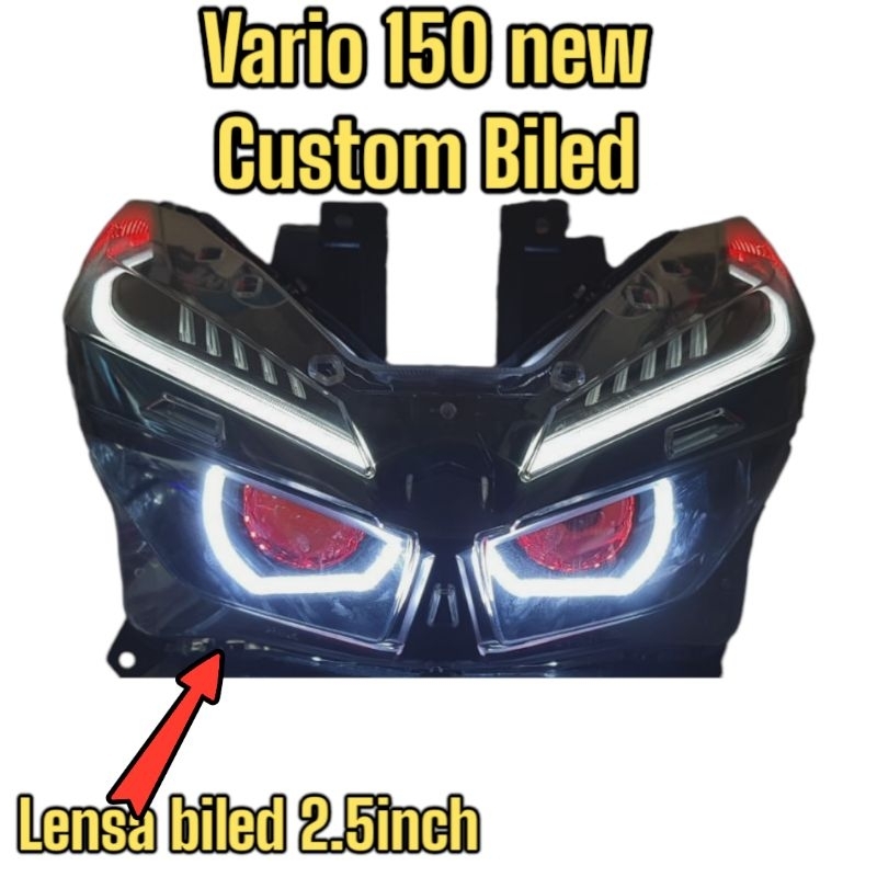 HEADLAMP VARIO 125/150 NEW CUSTOM PROJIE BILED PLUS SAKLAR TERANG BANGET Pkuning mengkilapANGAN MUDAH
