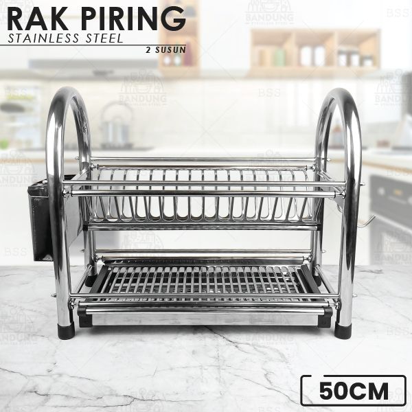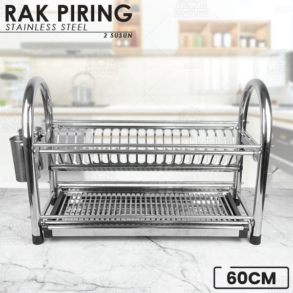 Rak piring 50cm/60cm Rak stainless steel tebal tempat Piring sendok pisau 2 susun Rak Piring Minimalis Modern