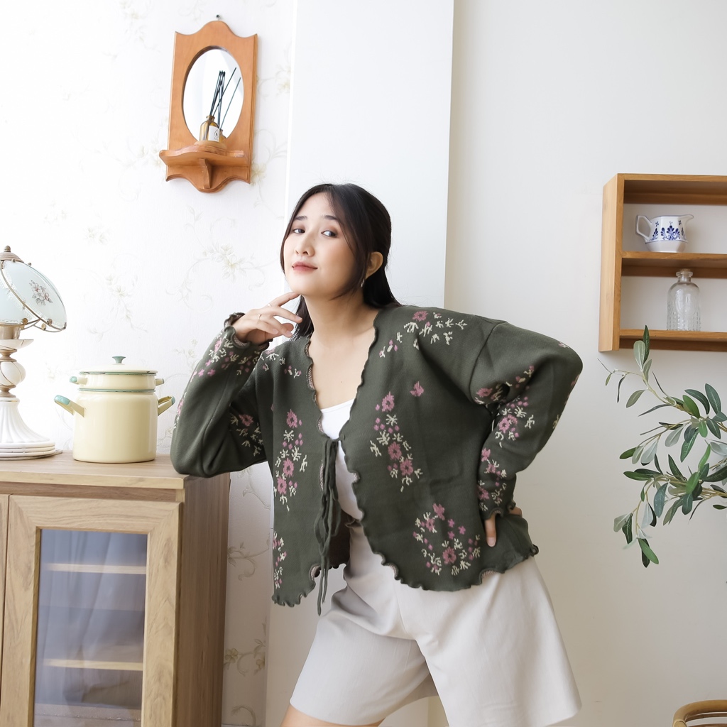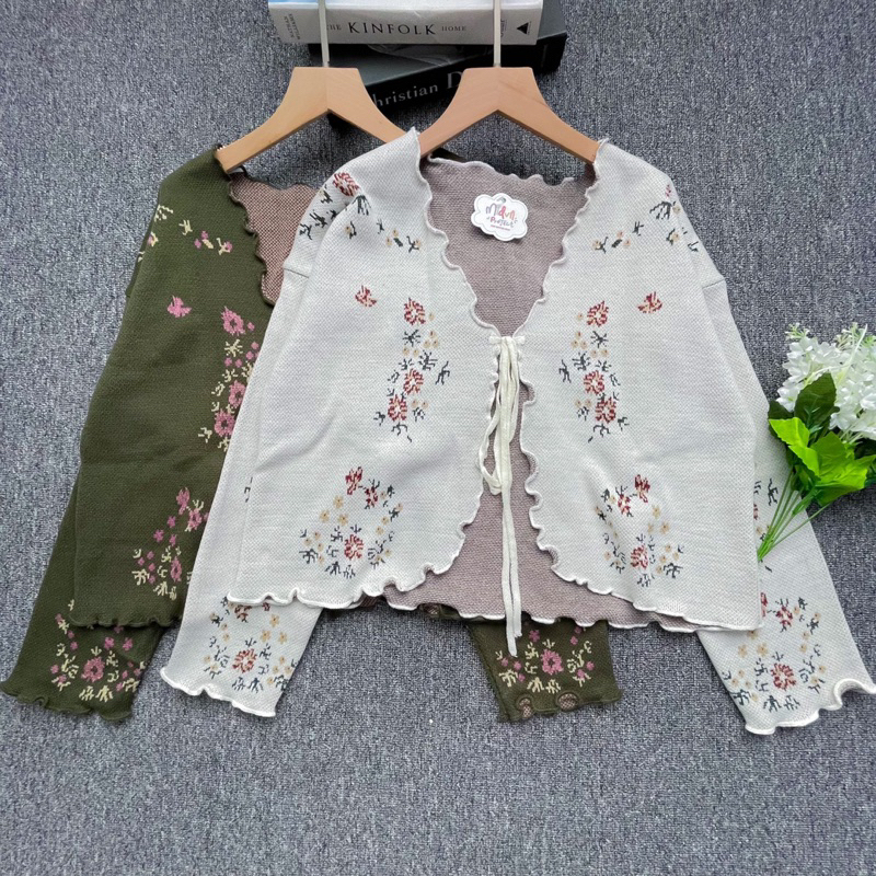 DAISY STUFF Camilia Crop Outer Rajut Wanita Korean Style Motif Bunga