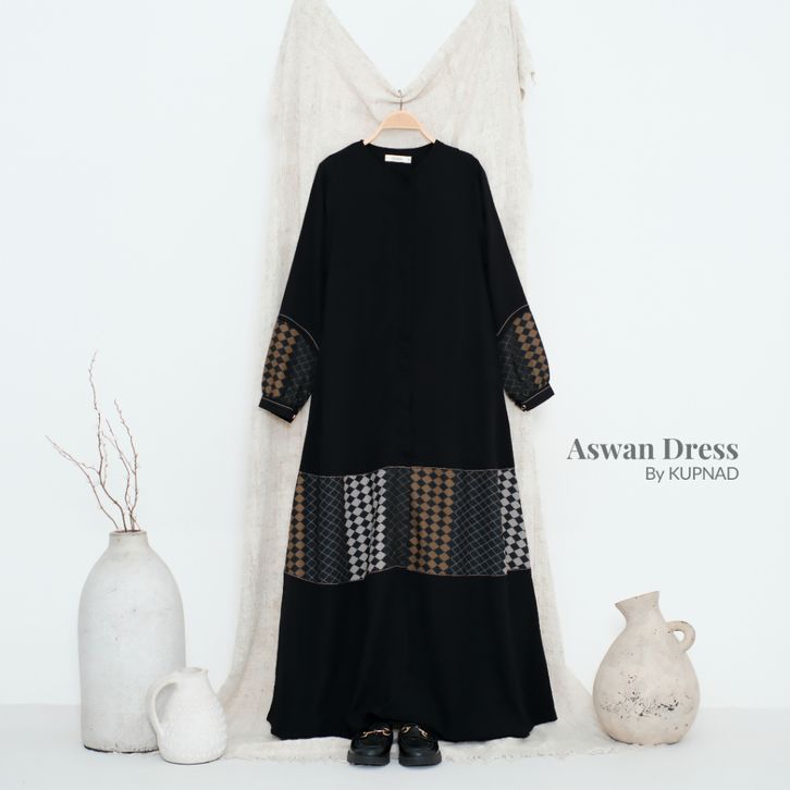 GAMIS WANITA TERBARU 2025 GAMIS WANITA KEKINIAN GAMIS WANITA TERBARU Gamis Hitam Elegan untuk Umroh Haji – Aswan Dress