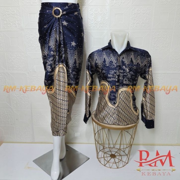 Baju Kemeja Batik Pria Couple Rok Lilit Batik Wanita Set Pakaian Tradisional