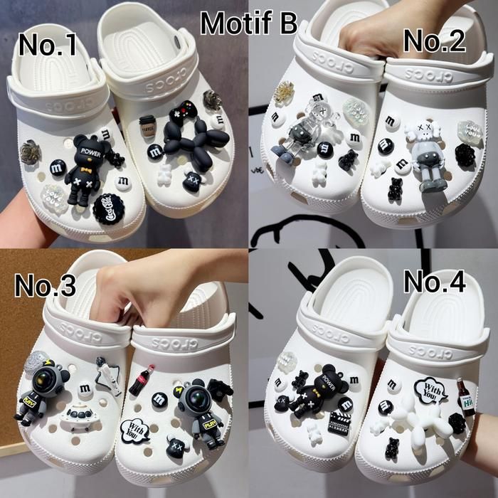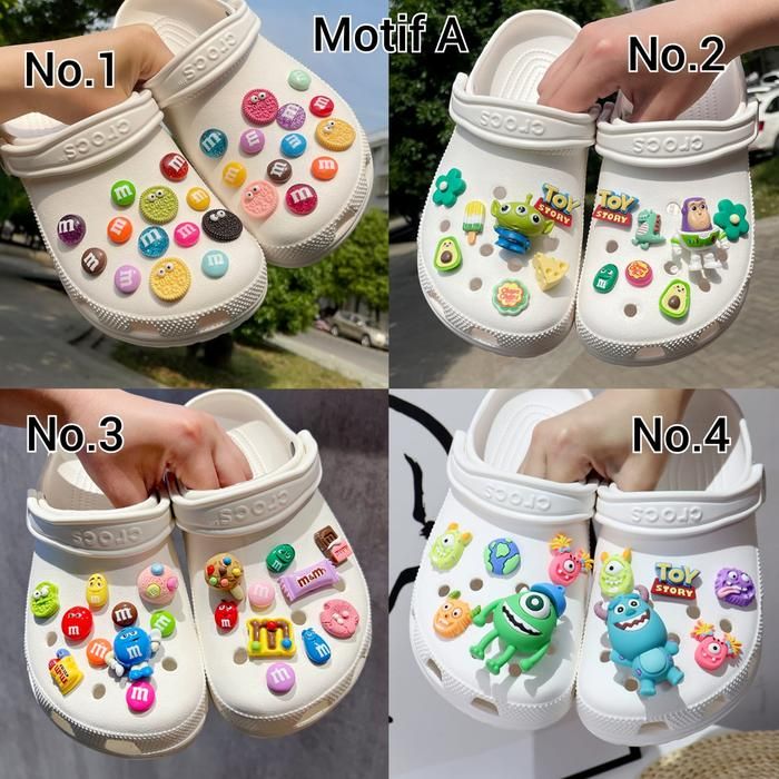 Sandal Crocs Dewasa Wanita Pria Jibbitz Crocs Aksesoris Sepatu Sandal Per Set/Pin Hiasan Sandal - Motif A 1