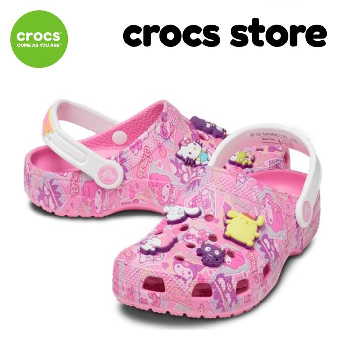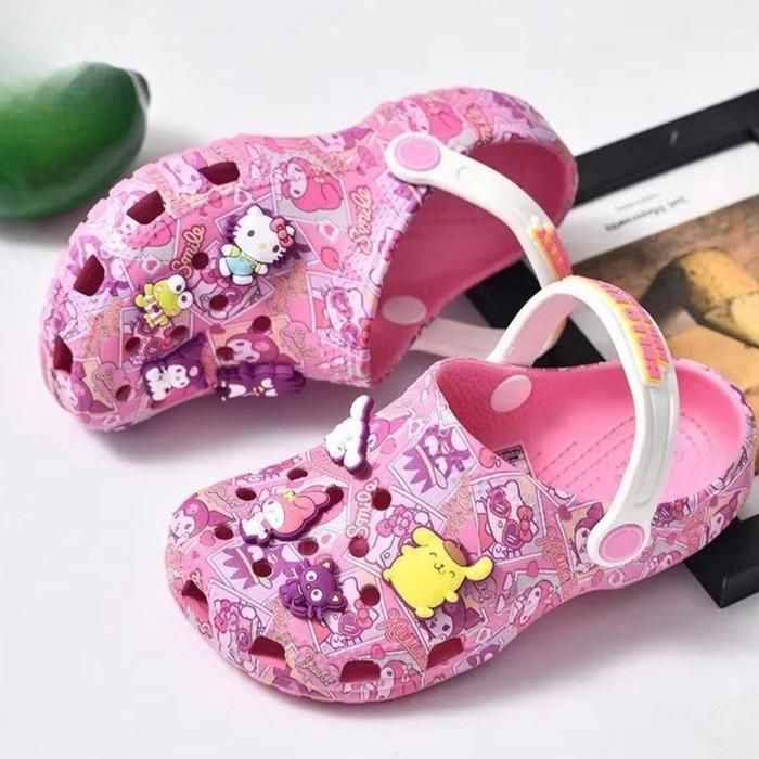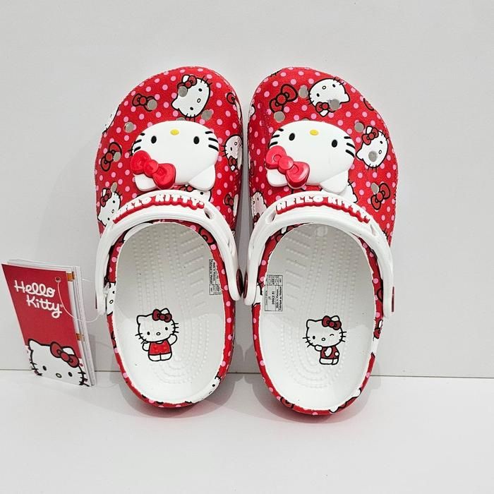 Sandal Crocs Dewasa Wanita Pria SANDAL CROCS ANAK HELLO KITTY AND FRIENDS CLASSIC CLOG KIDS - Merah Muda J3