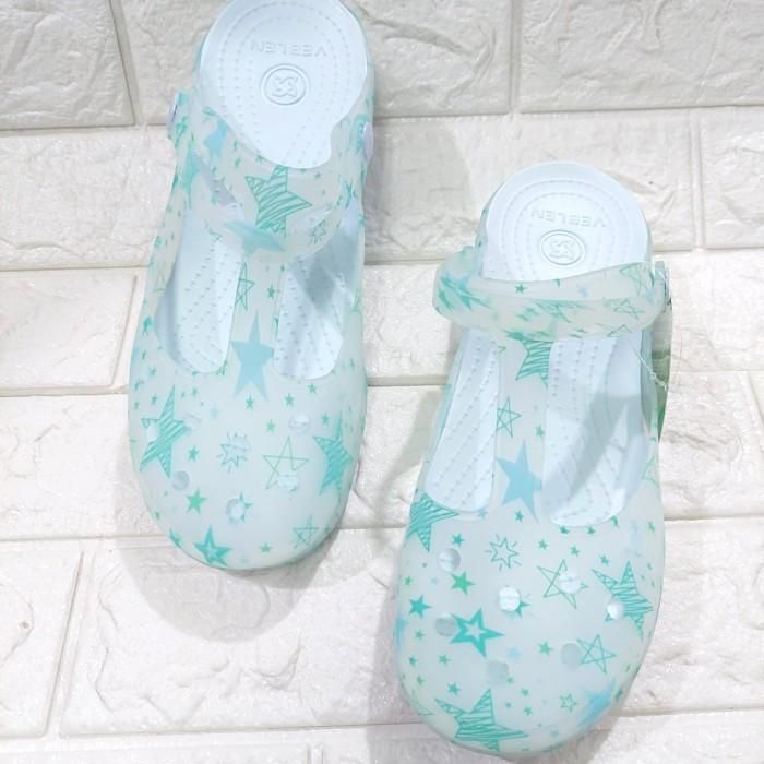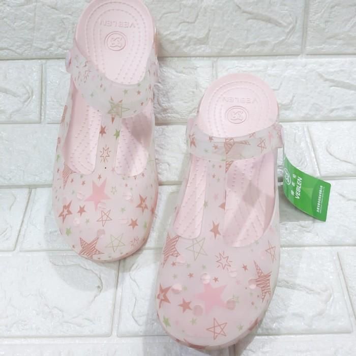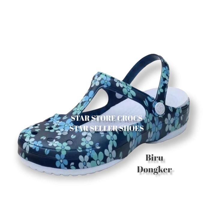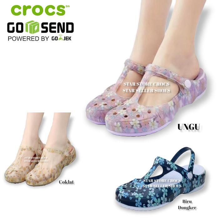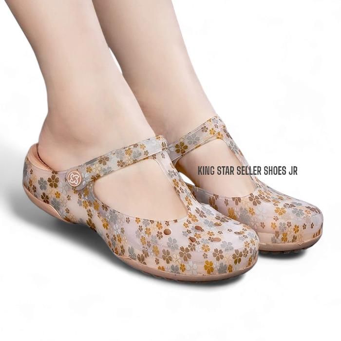 Sandal Crocs Dewasa Wanita Pria Sandal Crocs Wanita Marry Jane Flower Motif - Flower coklat 36