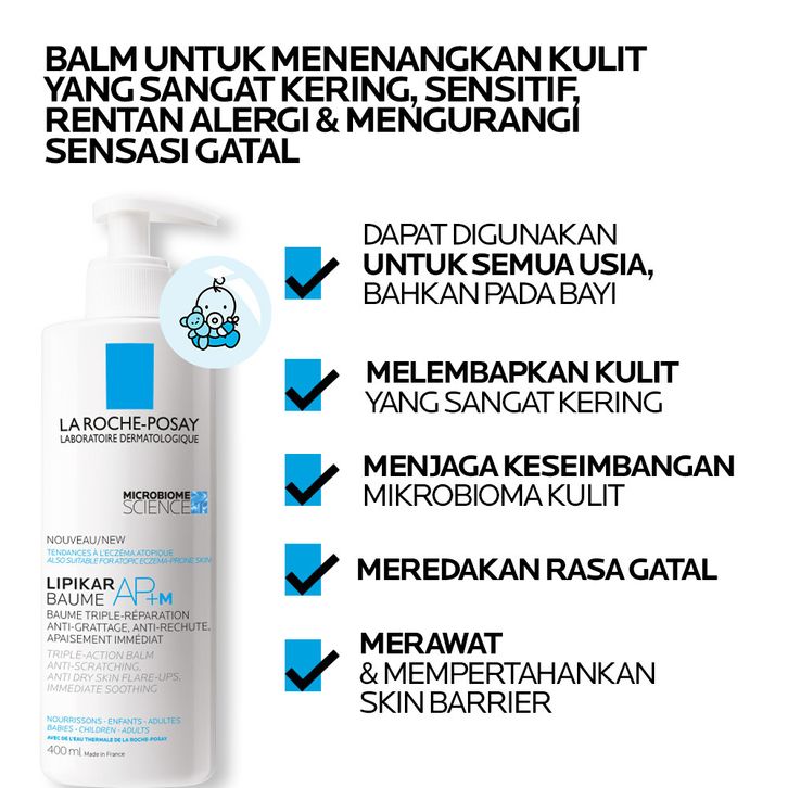 La Roche Posay Lipikar Baume AP+M Balm 400ml- Face/ Body Moisturizer Kulit Alergi/ Sensitif/ Kering