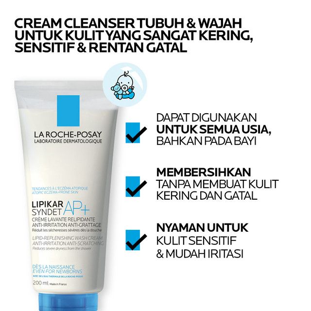 La Roche Posay Lipikar Syndet AP+ Cleanser 200ml - Facial/ Body Wash Kulit Alergi/ Sensitif/ Kering