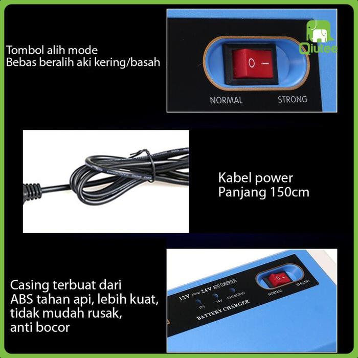 codVOLTUNER Charger Aki 12 v 24 v 10A Ampere Cas Aki Casan Aki Mobil Truck