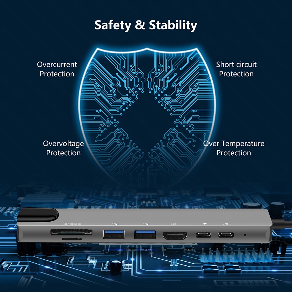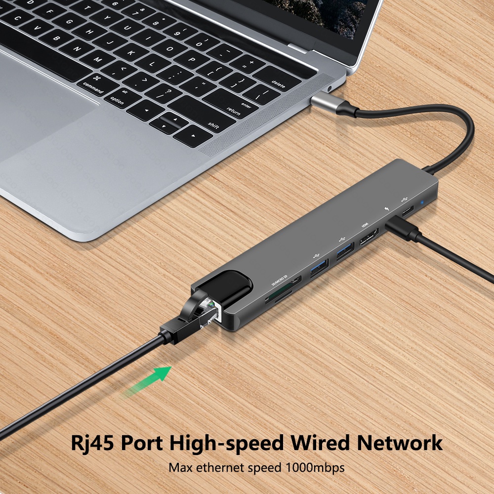USB C Hub Type-C 3.1 to 4K HD-Compatible RJ45 USB SD/TF Card Reader PD Fast Charge 8-in-1 USB Dock