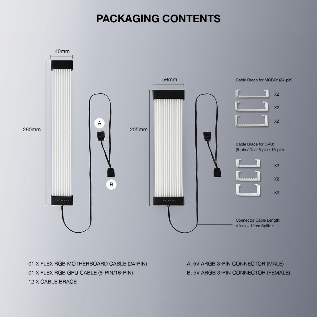 TECWARE Flex RGB Light Strip Set for PSU Extension Cables GPU Cable and Motherboard Cable LED Cover 5V 3 pin ARGB